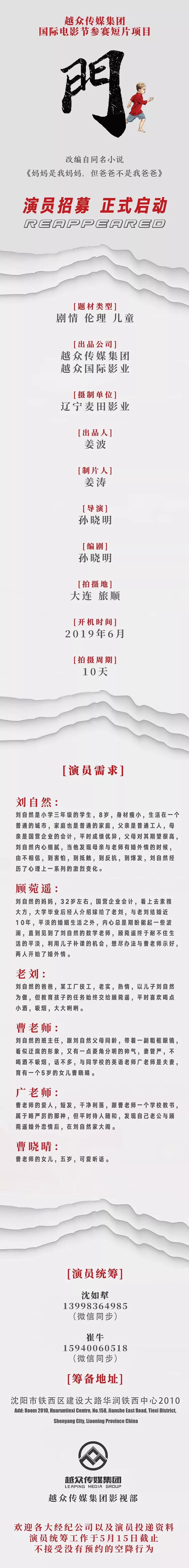 欢迎各大经纪公司以及演员投递资料,演员统筹工作于5月15日截止,不接受没有预约的空降行为。