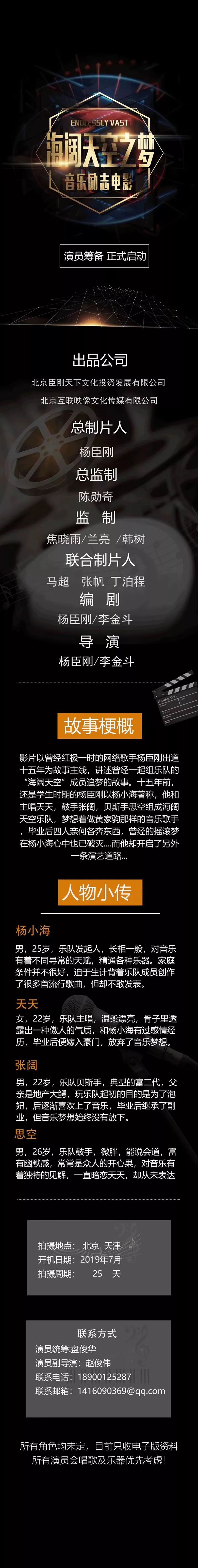 剧中大量角色未定,欢迎各大经纪公司,经纪人,艺人朋友投递资料,期待同样心动的你们。