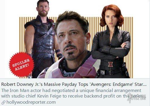 其中饰演钢铁侠的小罗伯特唐尼在《复联3》中至少拿走了7500万美元,约合人民币5.05亿。同其他演员不同的是,唐尼和漫威方面的财务商定更加特殊,多个消息源向THR的记者爆料了唐尼的报酬,在2017年的《蜘蛛侠:英雄归来》中,虽然他只进行了3天的拍摄,但每天仍收到了500万美元。