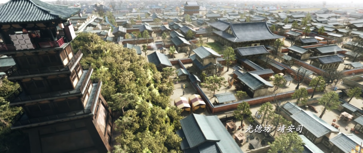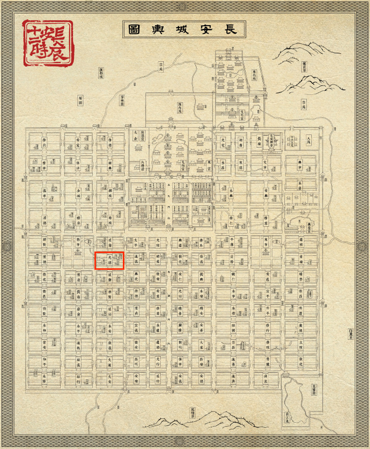 3. 光德坊:唐朝实行里坊制度,长安城内分为108坊,相当于108个方形居民社区(虽然不小),每个坊都设有围墙和坊门。如上图所示,光德坊在西边的城区,紧挨着西市。