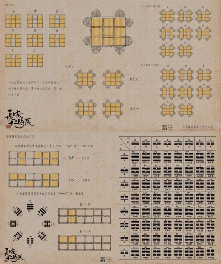 14. 望楼:监控+传递情报系统,分为大望楼和小望楼,敲鼓之后用方格拼出的图案传递信息。花纹图案对应三位数字,在密码本中可查询数字对应的文字含义。