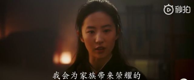 预告片中,刘亦菲饰演的花木兰被父母告知已被许下婚约。而木兰则坚定地说:“我会为家族带来荣誉的!”