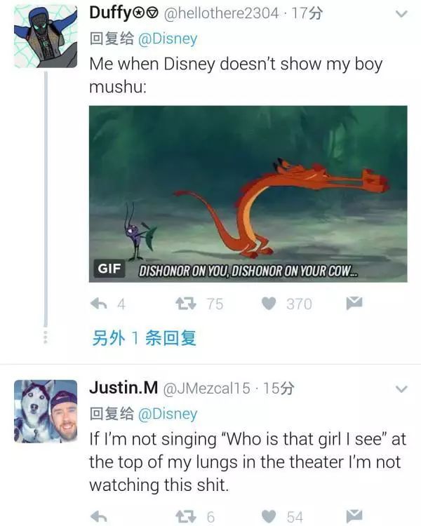 迪士尼动画《花木兰》中木须龙是一条龙,同时也是花家的守护神,在花木兰替父从军之后,木须龙一直跟随花木兰,是同伴更是相依为命的亲人。