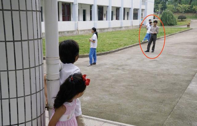 等等和小花妹妹站在水管子旁边,远远地看着邓超,邓超也正好看着孩子们,画面很温馨。虽然画面很模糊,但是邓超的装扮似乎有点儿邋遢还是能看出来的,因为邓超在影片中演的本来就是穷人。