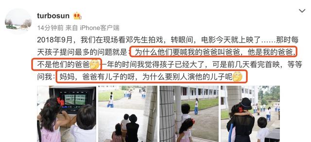 前几天看完首映,等等又问孙俪:妈妈,爸爸有儿子的呀,为什么要别人演他的儿子呢?