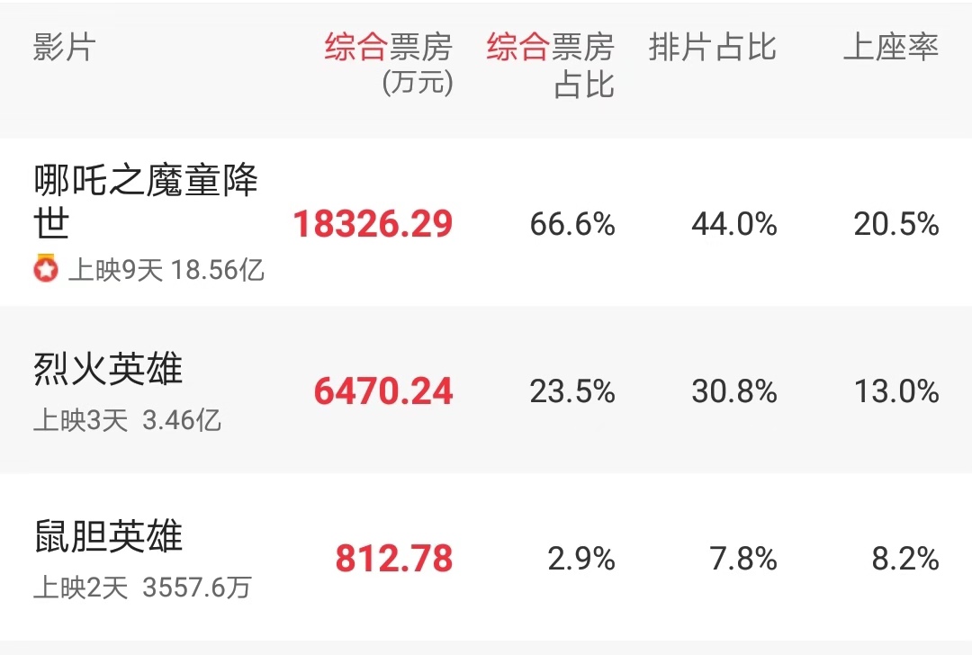 与口碑暴跌一同到来的,则是院线排片这个市场监控的透视镜。《鼠胆英雄》在上映首日,院线给出12.3%的排片率,而其首日票房产出占比,则只有6.6%。这一尴尬的票房成绩,让各大院线在次日纷纷调低了这部电影的预排场次。上映第二日,《鼠胆英雄》只拿到了7.8%的排片。截至目前,其票房占比更加尴尬,只有2.9%了。