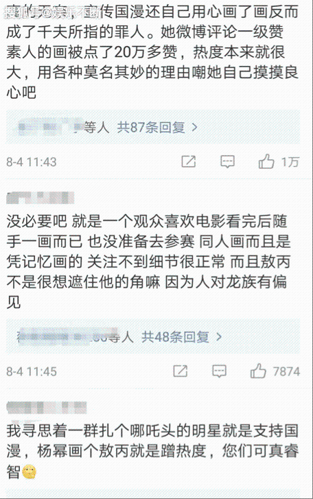 具体原因不得而知,有网友评论道,因此有网友猜测可能是因为没有画敖丙的龙角的原因,有网友猜测,是因为杨幂没有看过电影所以她不知道有龙角,也有网友觉得电影哪吒在蹭明星的热度,还有网友表示,这电影的寓意就是消除偏见,现在多讽刺,真是上纲上线。