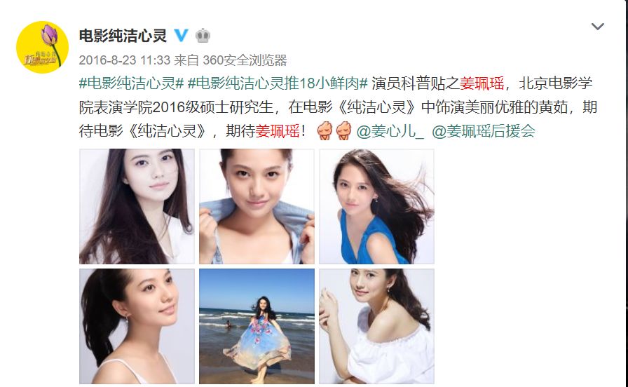 但是相比学历上的优秀,姜珮瑶的影视剧资源却不好。在《亲爱的热爱的》之前,她最出名的作品就是《纯洁心灵·逐梦演艺圈》。