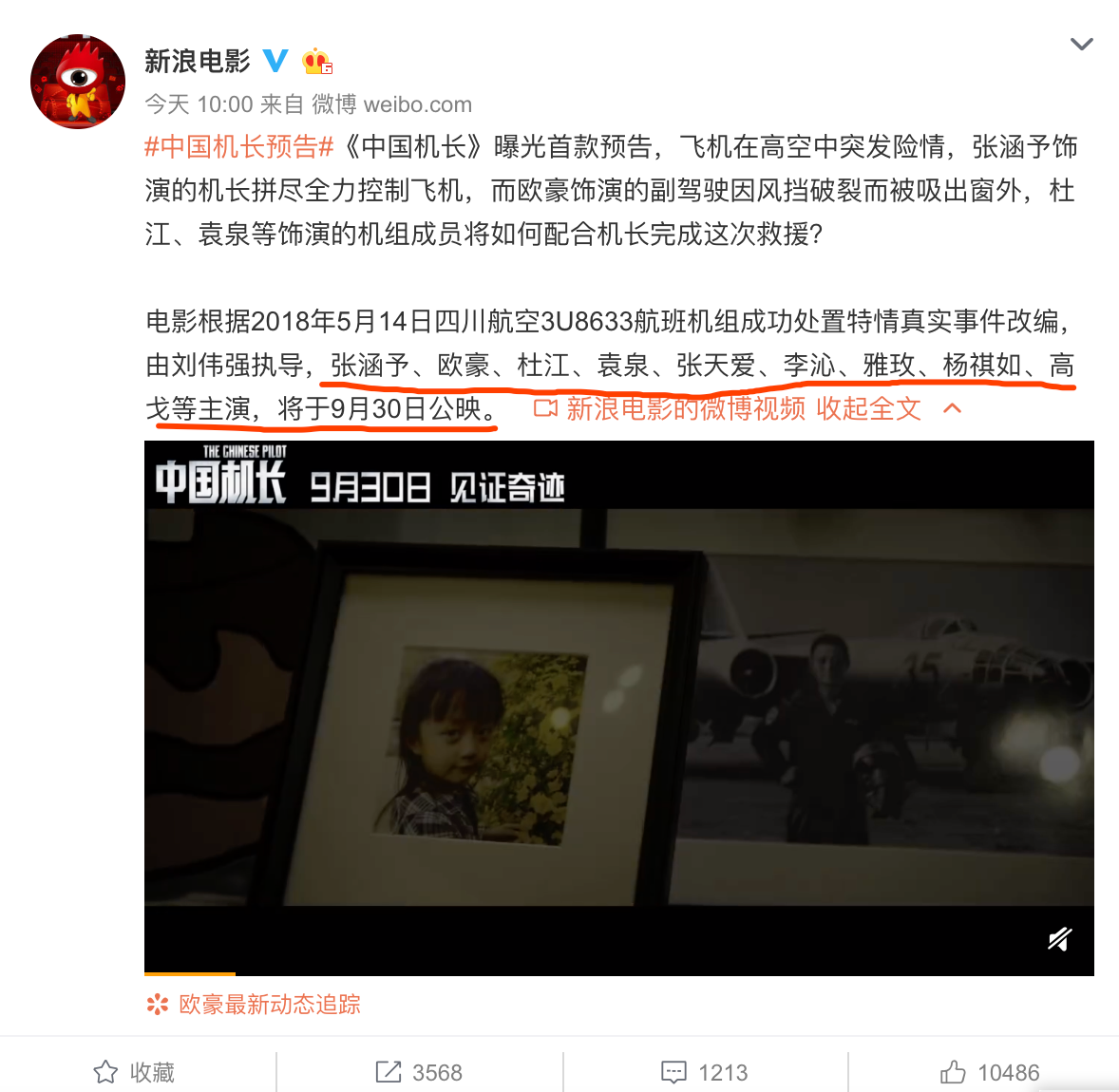 电影《中国机长》发布了最新剧照,且将于9月30日全国上映。这部电影由张涵予、袁泉、张天爱、李沁、杜江等主演,电影根据真实事件改编。然而电影刚宣传没多久,李现的粉丝都怒了,十分心疼李现,原因是配角李现并未出现在宣传中。