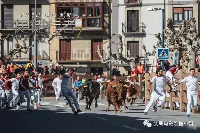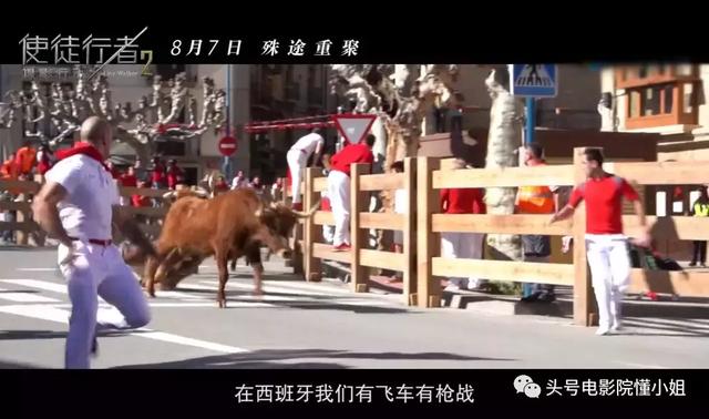 片中经典的斗牛飞车场面,因为拍摄期已经过了当地的“奔牛节”,剧组特意还原了“奔牛节”场景,6头蛮牛、百名壮汉,加上几部飞车在西班牙街头上演追逐枪战,给观众以紧张的视觉刺激,但其中的危险可想而知。