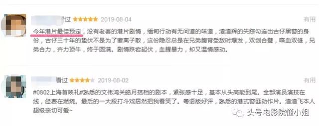该片首映过后,好评如潮,剧情跌宕起伏,全程高能,笑中有泪。港片复兴,真的不只是说说而已,观众纷纷留言,有人认为《使徒2》当选今年港片最佳预定。