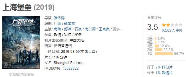 豆瓣3.5分!《上海堡垒》高排片难挡口碑票房扑街