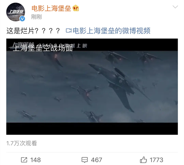 电影失利带来的影响不仅仅是对导演和演员形象的覆灭,最为重要的,当属是投资方和出品方的损失过于巨大,或许是为了挽救败局,8月10日夜晚,《上海堡垒》官微就在微博上连发是数条宣传片并质疑网友:“这是烂片?”
