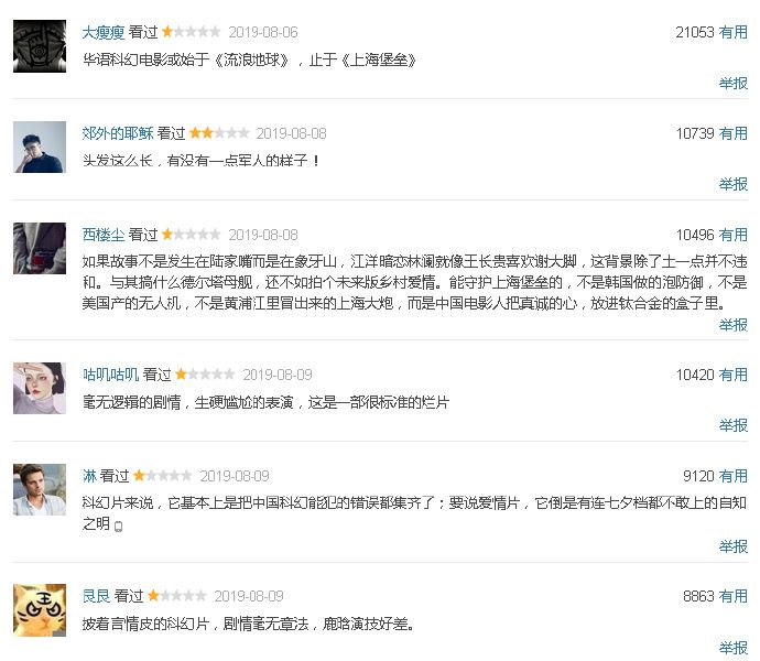 总之,除了特效,一无是处。更有网友痛心疾首地表示“华语科幻电影或始于《流浪地球》,止于《上海堡垒》”。