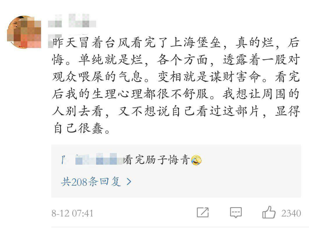 这奇怪的现象让小8不禁想起了2013年上映的年度烂片王《富春山居图》,那部集合了众多实力派演员的电影也收获了不少批评,当时也有相当一部分网友表示自己十分好奇它烂的程度,这与现在《上海堡垒》的观众反应如出一辙。