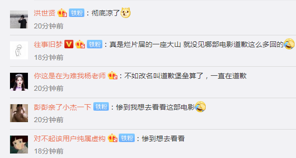 影迷们早已经失望,纷纷留言评论称:“真是烂片届的一座大山,就没见哪部电影道歉这么多回的!”
