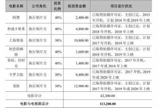 ▲华视娱乐招股书上所列的电影投资项目 截图来源:华视娱乐招股书