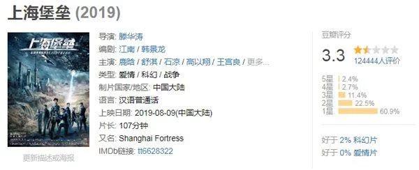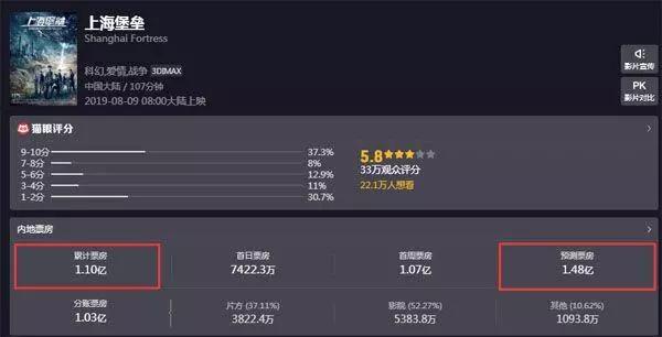 口碑、票房双双扑街,《上海堡垒》前期宣传那么厉害,自称花了5年时间筹备、斥资3.6亿,如今票房过亿都相当艰难。