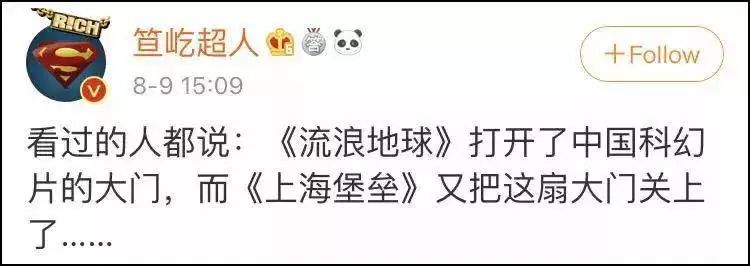 更有网友批判,《流浪地球》打开了中国科幻的一扇门,《上海堡垒》又给关上了。