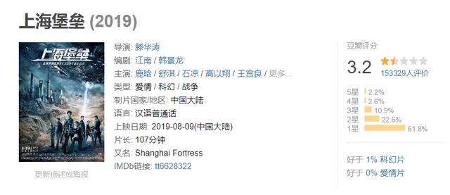 从电影的质量角度来看,《上海堡垒》虽然不算优质,但3.2的评分的确偏低,甚至不如岳云鹏的《鼠胆英雄》,根本原因在于观众的失望之感。若《上海堡垒》在《流浪地球》前上映,可能成绩还不会这么差。