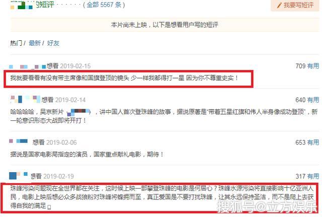 因在《战狼2》和《流浪地球》中有精彩演绎,所以有吴京出现的影片,逐渐开始自带热搜体质。近期,吴京投拍的新片也即将在国庆前上映,故事讲述了中国登山队当年攀登珠峰的壮举。不过神奇的是,片子还未上映,某评分网上就已经开始有人给差评了。对于这波操作,大家也是很诧异,是不是吴京不小心动了谁的奶酪。
