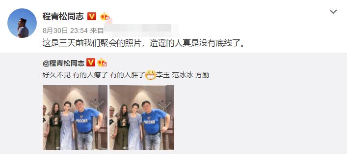 此前范冰冰被传怀孕生子,程青松还曾怒斥谣言力挺好友,从他的朋友圈来看,电影界著名导演和演员们才是他的交际圈,以这样的身份来压两个刚出道不久的小演员,是否有些小题大做?