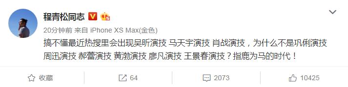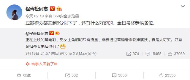 面对这样的现象,“金扫帚”创始人程青松发微博怒斥这种现象,吐槽了《诛仙》这部流量电影只会通过营销号吹牛,同时也吐槽了肖战的演技!不过显然很多背后的团队看到的不是口碑,而是商机又来了!