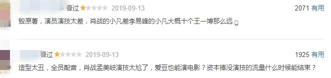 影片豆瓣评分一路从开分时的6.7跌到5.7,不少网友更是打出了一星差评。主演肖战的“爱豆”出身也成为了“原罪”,被抨击演技,甚至被质疑“爱豆也能演电影”?甚至还有直接拿《诛仙1》和口碑滑铁卢的《上海堡垒》相提并论,认为都是“热门IP+流量”的“烂片”。