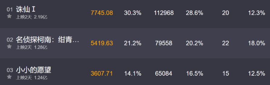 相比于《诛仙1》,这部《名侦探柯南:绀青之拳》更能称得上是粉丝电影,截至9月14号21点电影以5419万拿下了日票房第二,上映2天累计票房1.28亿