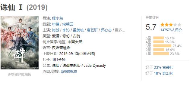 一天时间,《诛仙》从开画时的6.7分降到了5.7分,足以说明这片子在正常观众眼里有多差,然而依旧远远不是其真实品质的体现。