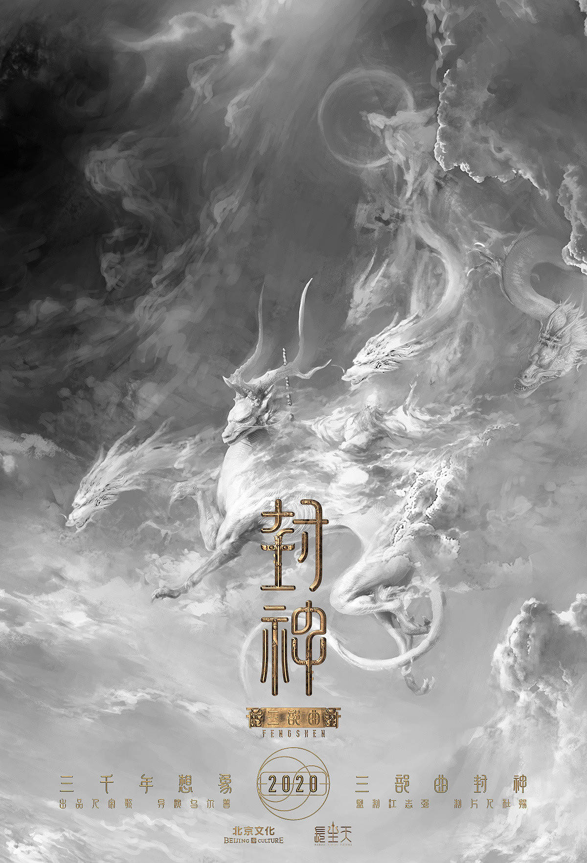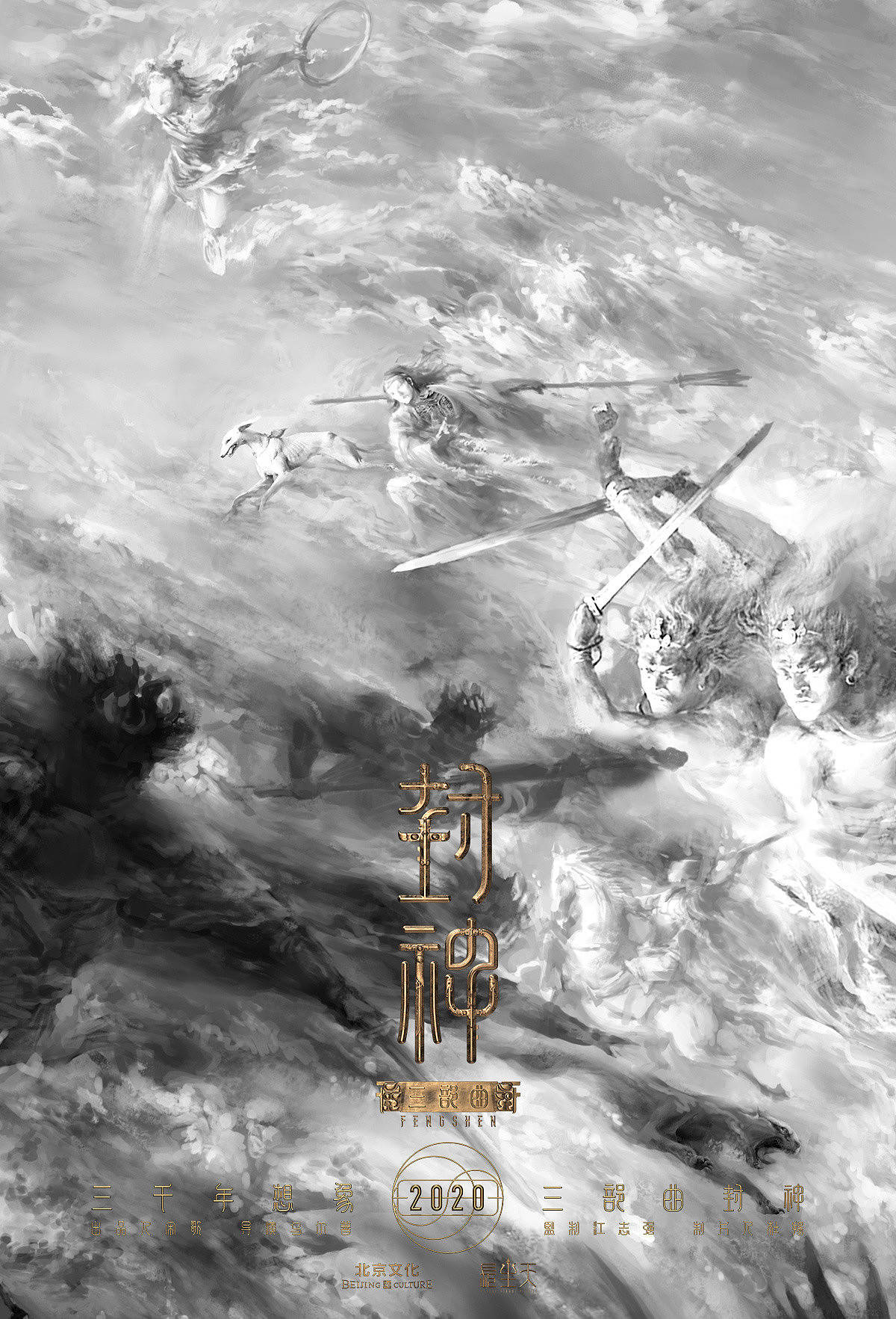 借助翻腾汹涌的真元之气,呈现了一个遥远而深邃的上古宇宙,并融入封神三部曲的一些重要角色和故事情节,形成一个抽象的“阴阳大战”的整体视觉符号。