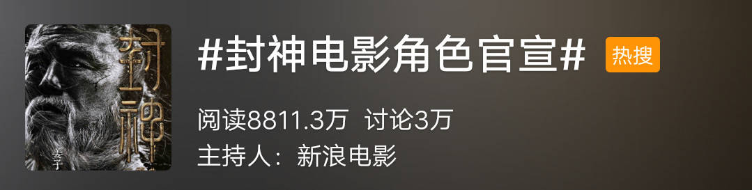 原标题:已拍摄一年多的《封神三部曲》,终于官宣了!好久没啥动静但一直备受关注的电影《封神三部曲》,在昨天终于更新了! 官宣消息已公布,果然不出所料,关注度迅速上