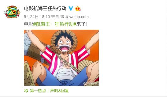海贼王20周年动画剧场版《航海王:狂热行动》开通官方微博 ,确认将引进中国。
