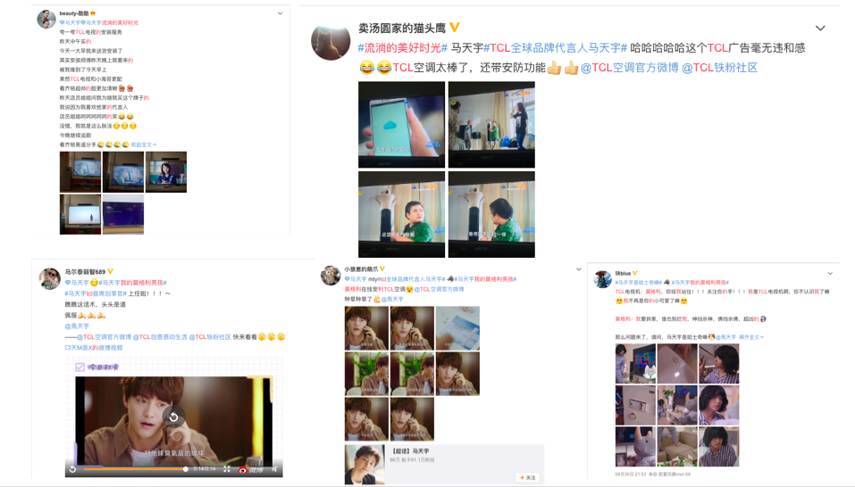 品牌转化视角站在粉丝角度,挖掘出粉丝感兴趣的场景,用创意视频、TCL小剧场番外故事、剧情海报以及表情包等多种形式包装,与粉丝进行强互动。而粉丝也回馈品牌,跟随剧情晒出TCL产品的植入场景,传达出品牌倡导的积极正能量的生活态度及品质生活理念。